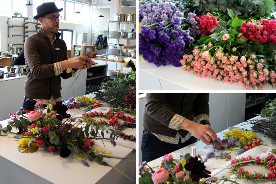 Nach einer sehr netten Begrüßung ging es dann auch schon zu unserem ersten Workshop. Jürgen hat uns dann gezeigt wie wir Blumenkränze, Gestecke und Girlanden aus wundervollen Blumen binden konnten.